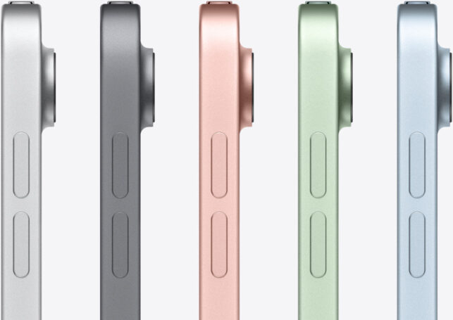 El iPad Air de Apple es el primer iPad que ofrece opciones de color únicas similares a los colores del iPhone y estará disponible en plata, gris espacial, oro rosa, verde y azul cielo. Lo más exclusivo del iPad Air es el nuevo sensor Touch ID integrado en el botón superior, el primero en un dispositivo Apple.
